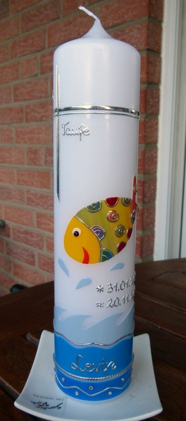 Kommunionkerze Konfirmationkerze bunter Fisch (301KK)