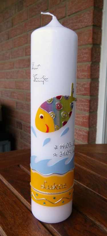 Die Motive auf der Kerze sind aus Wachs.
