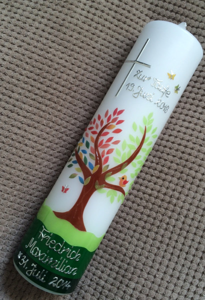 Auf Wunsch kann die Kerze individuell beschriftet werden.