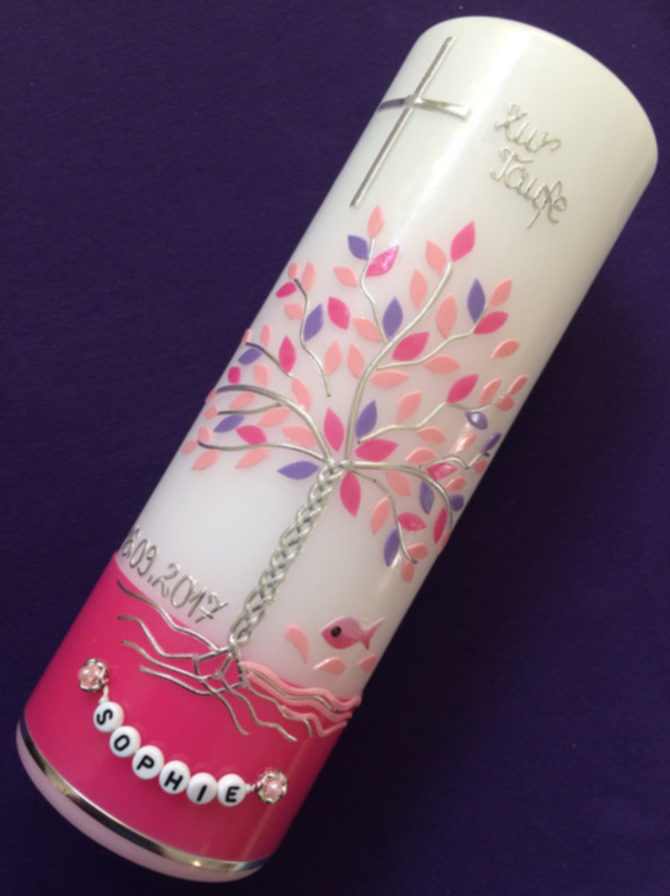 Der Schriftzug "Zur Taufe" kann auf Wunsch weggelassen oder abgeändert (z. B. "Zur Kommunion") werden.