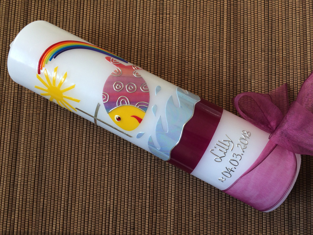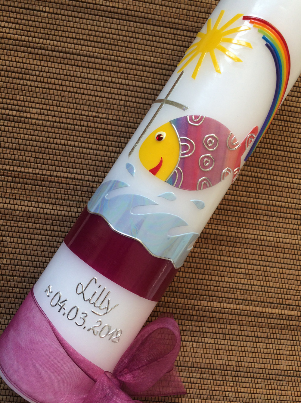 Der Schriftzug "Zur Taufe" kann auf Wunsch weggelassen oder abgeändert (z. B. "Zur Kommunion") werden.