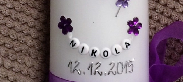 Der Vorname Ihres Kindes wird als Namenskette an der Kerze angebracht.