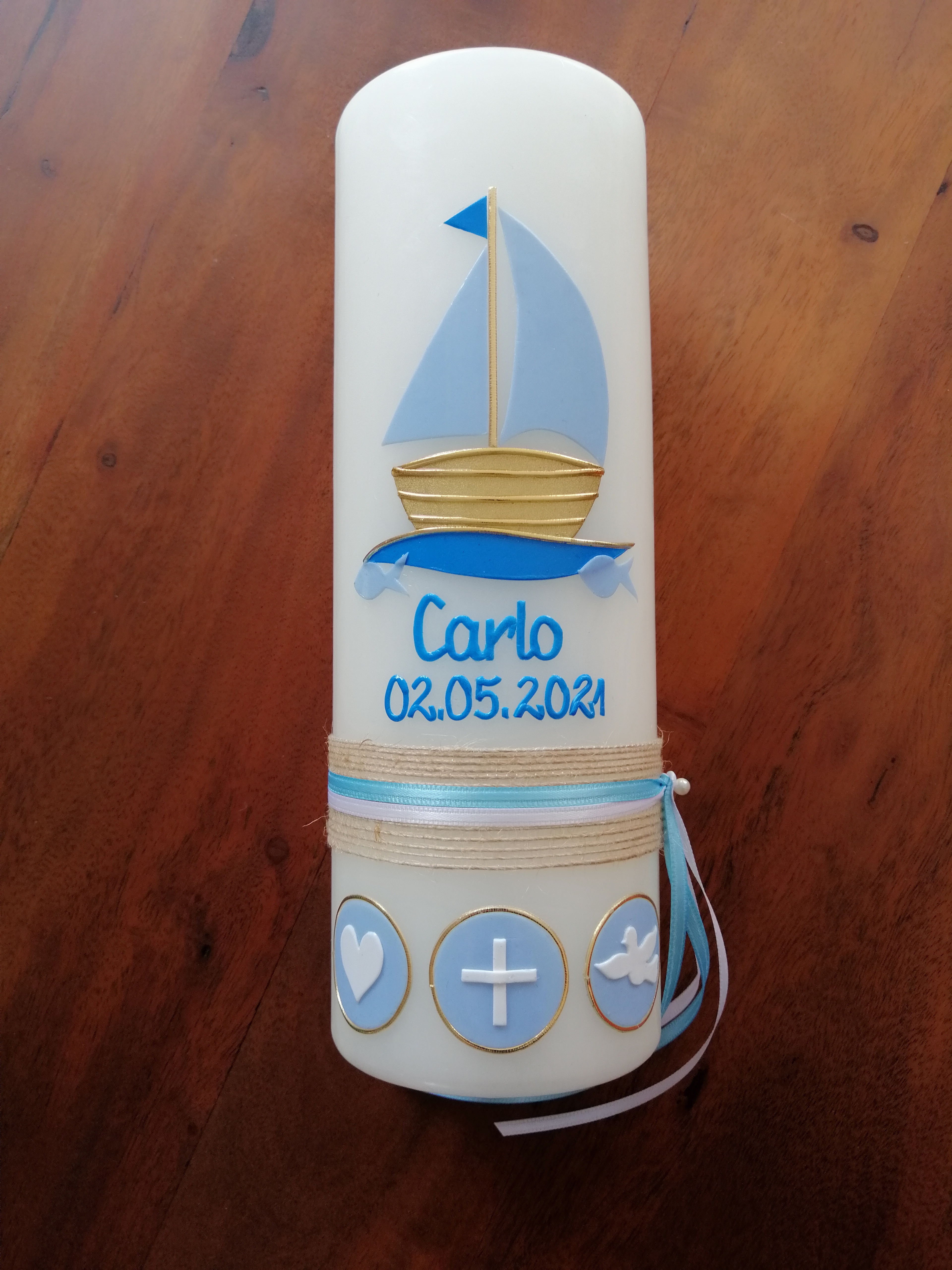 Auf Wunsch kann die Kerze individuell beschriftet werden.