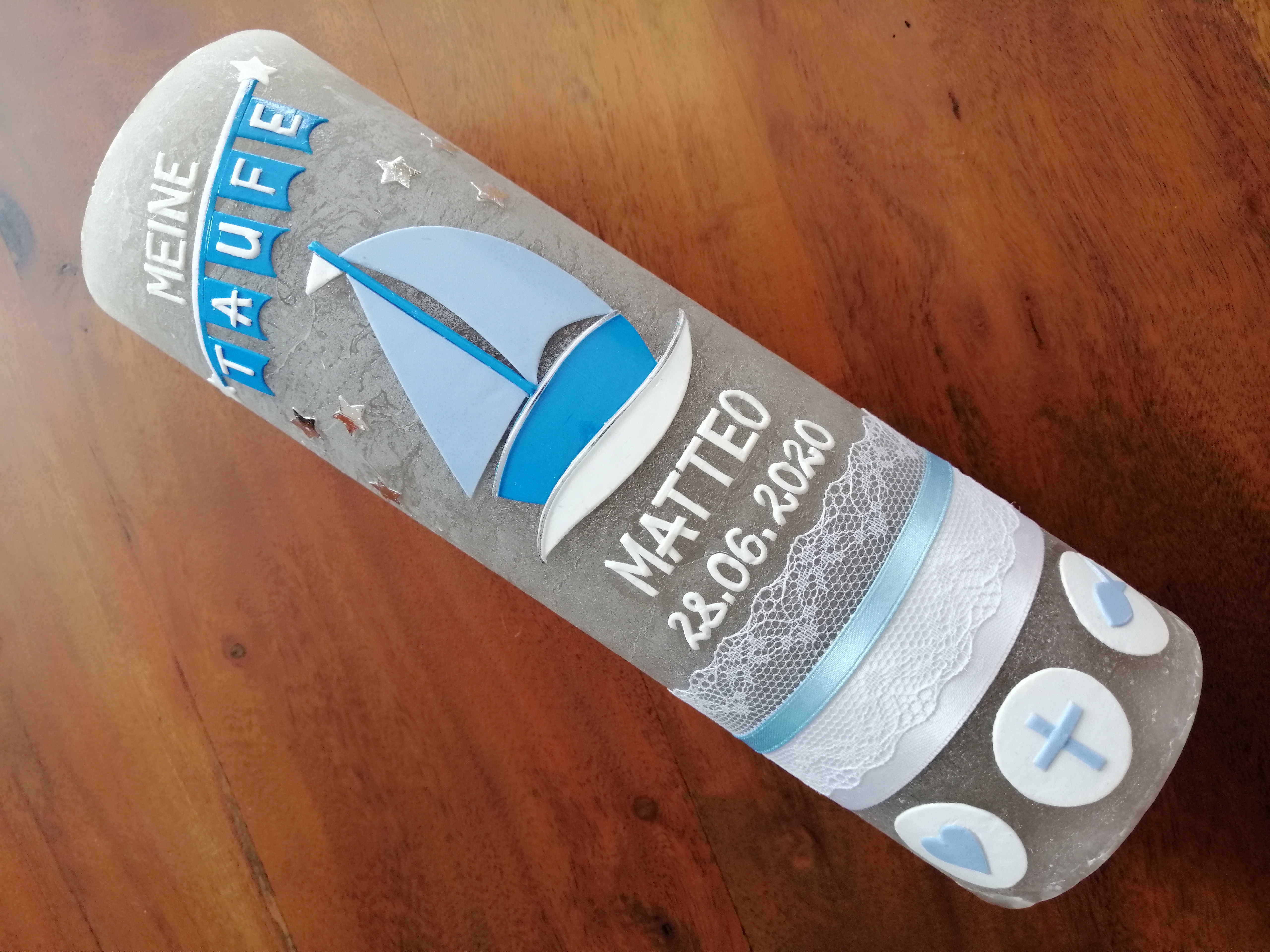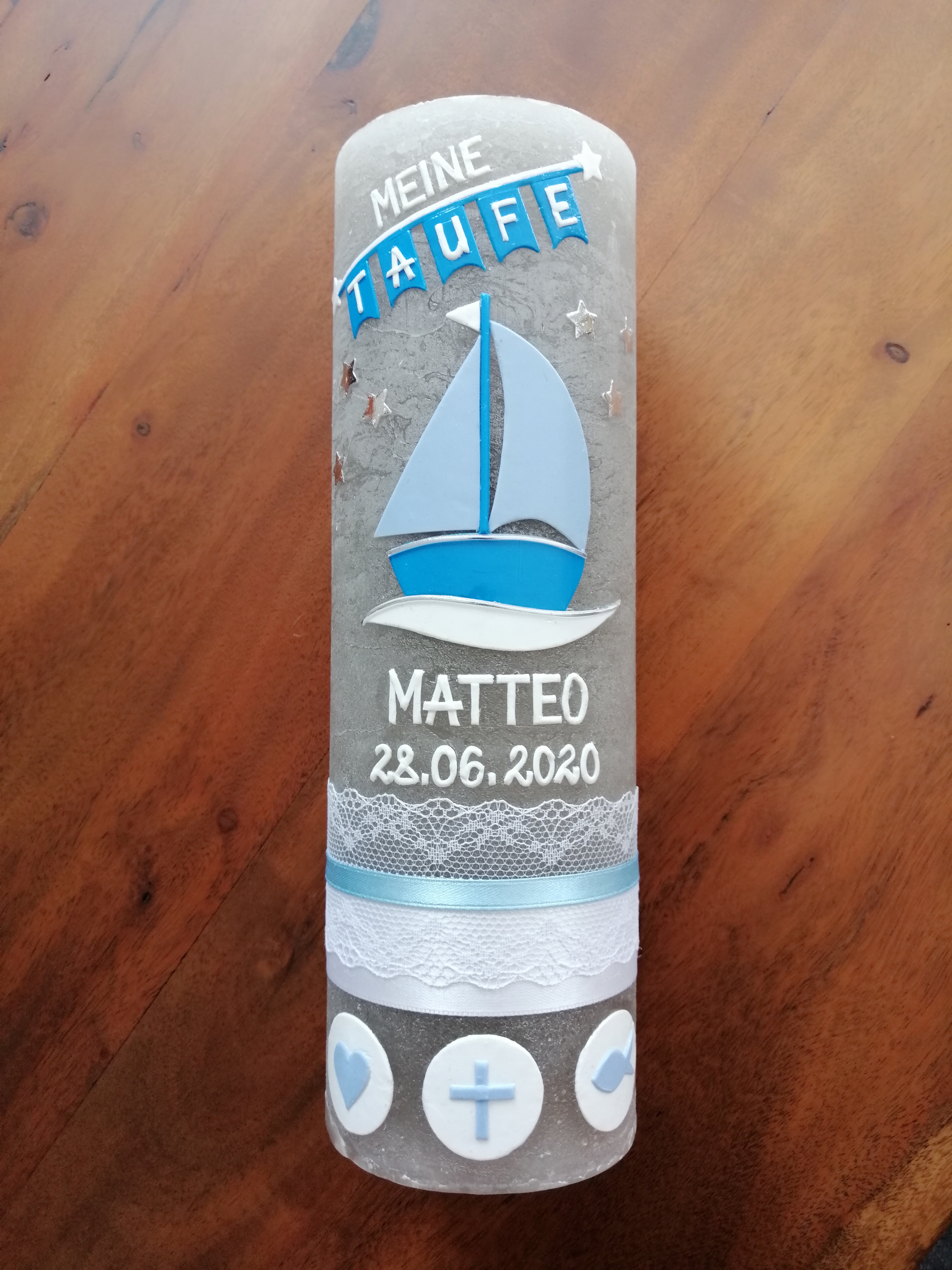 Rustica-Vintage Taufkerze Kommunionkerze Boot Arche (2596TK)