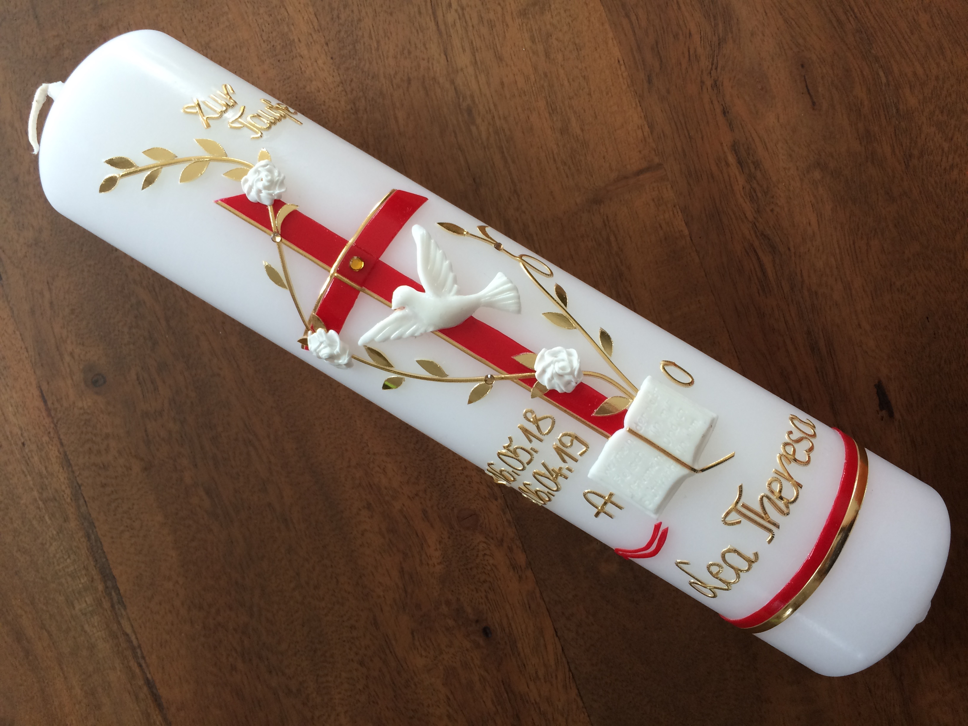 Taufkerze Kommunionkerze Kreuz + Ranke (2498TK)