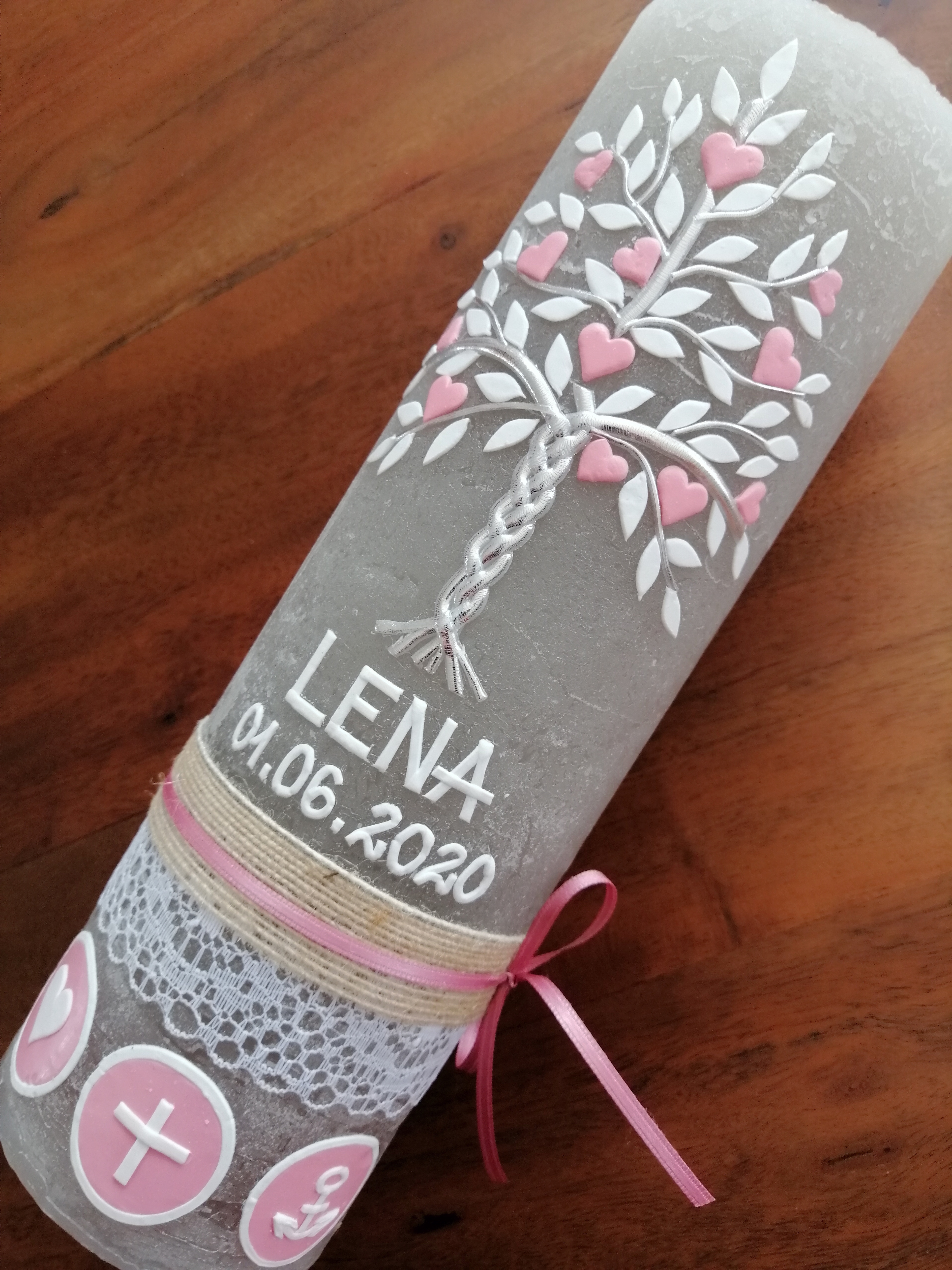 Die Farbe des Kerzenrohlings ist grau.