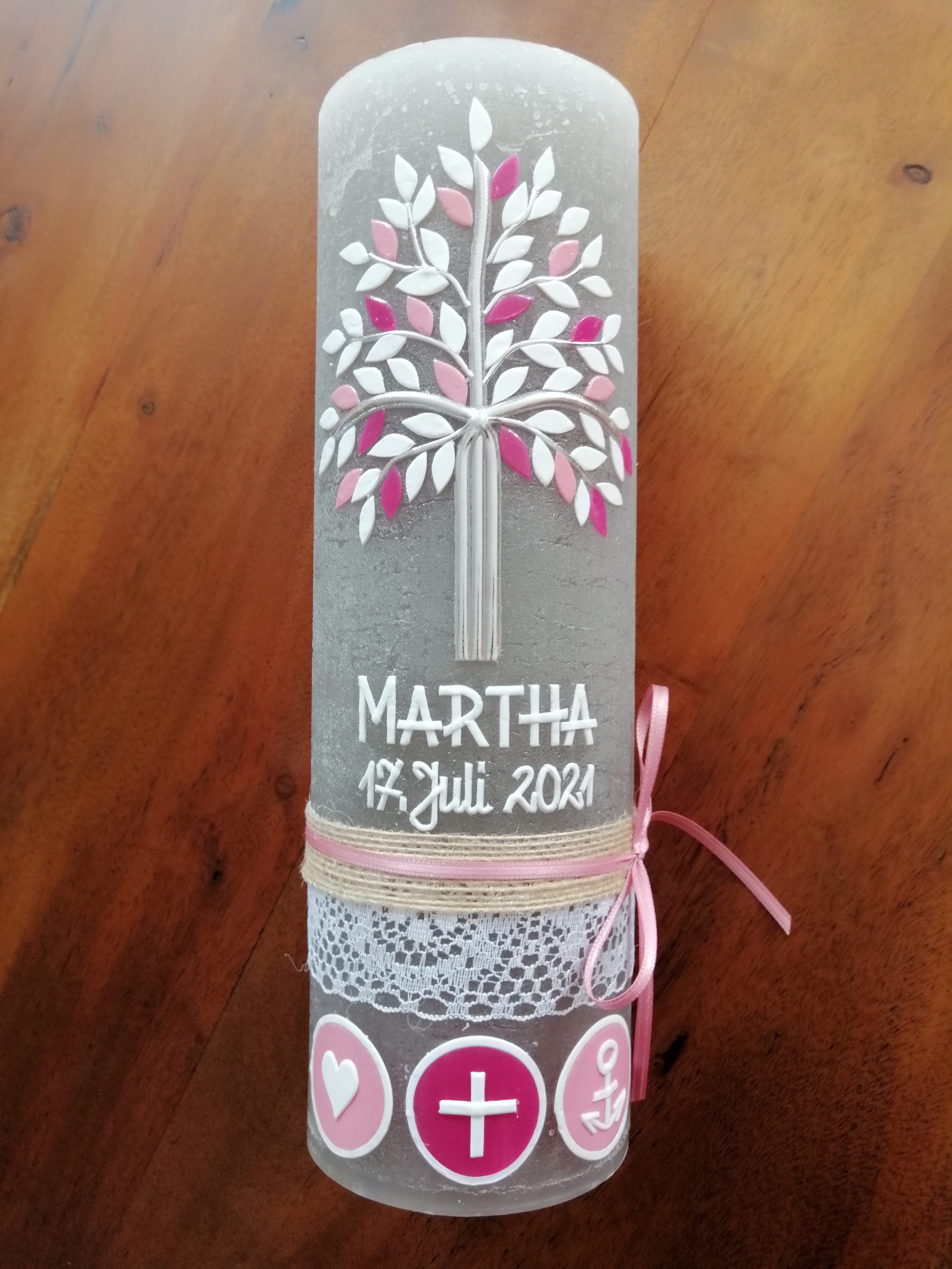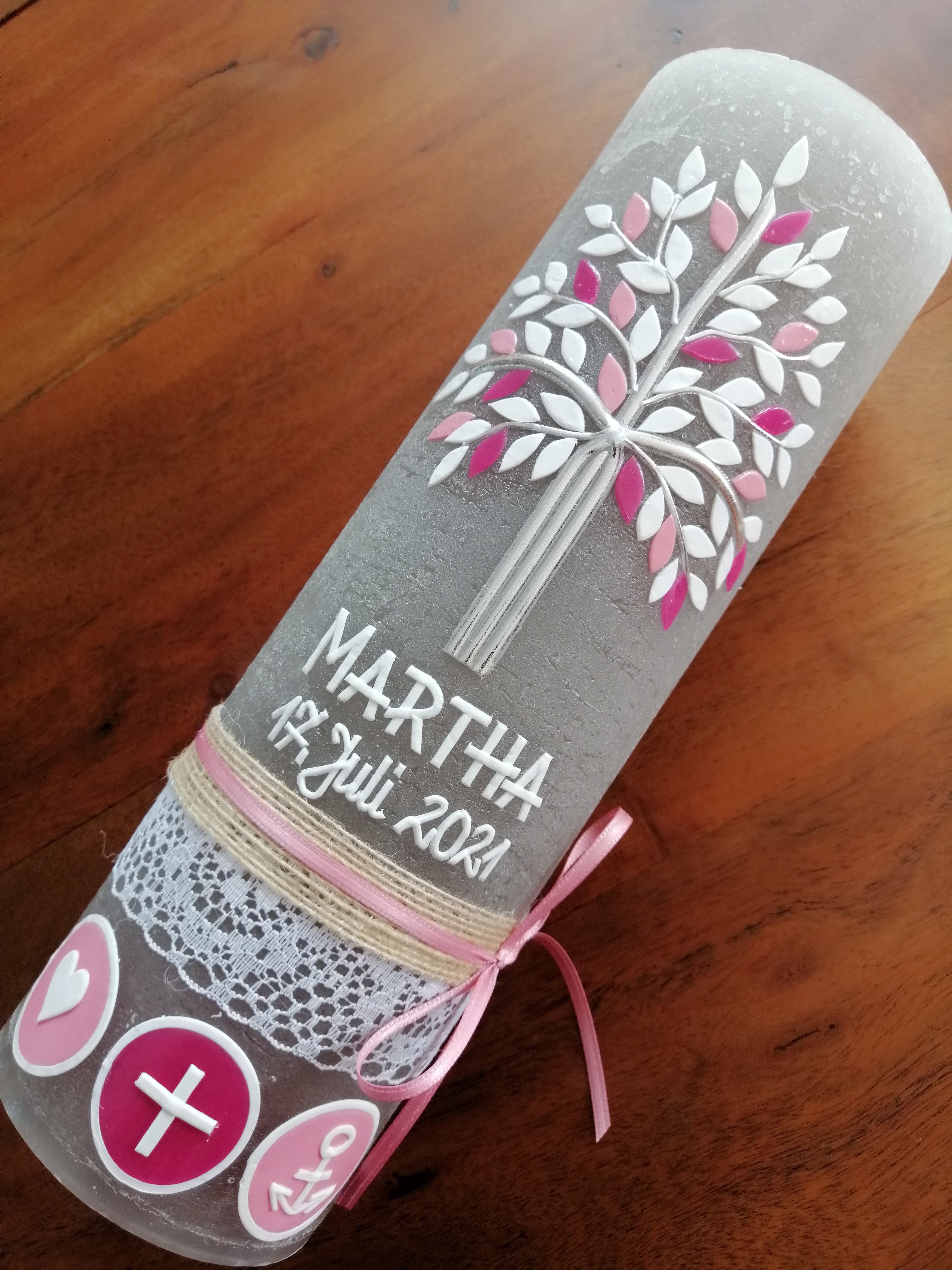 Rustica-Vintage Taufkerze Kommunionkerze Lebensbaum (2575TK)