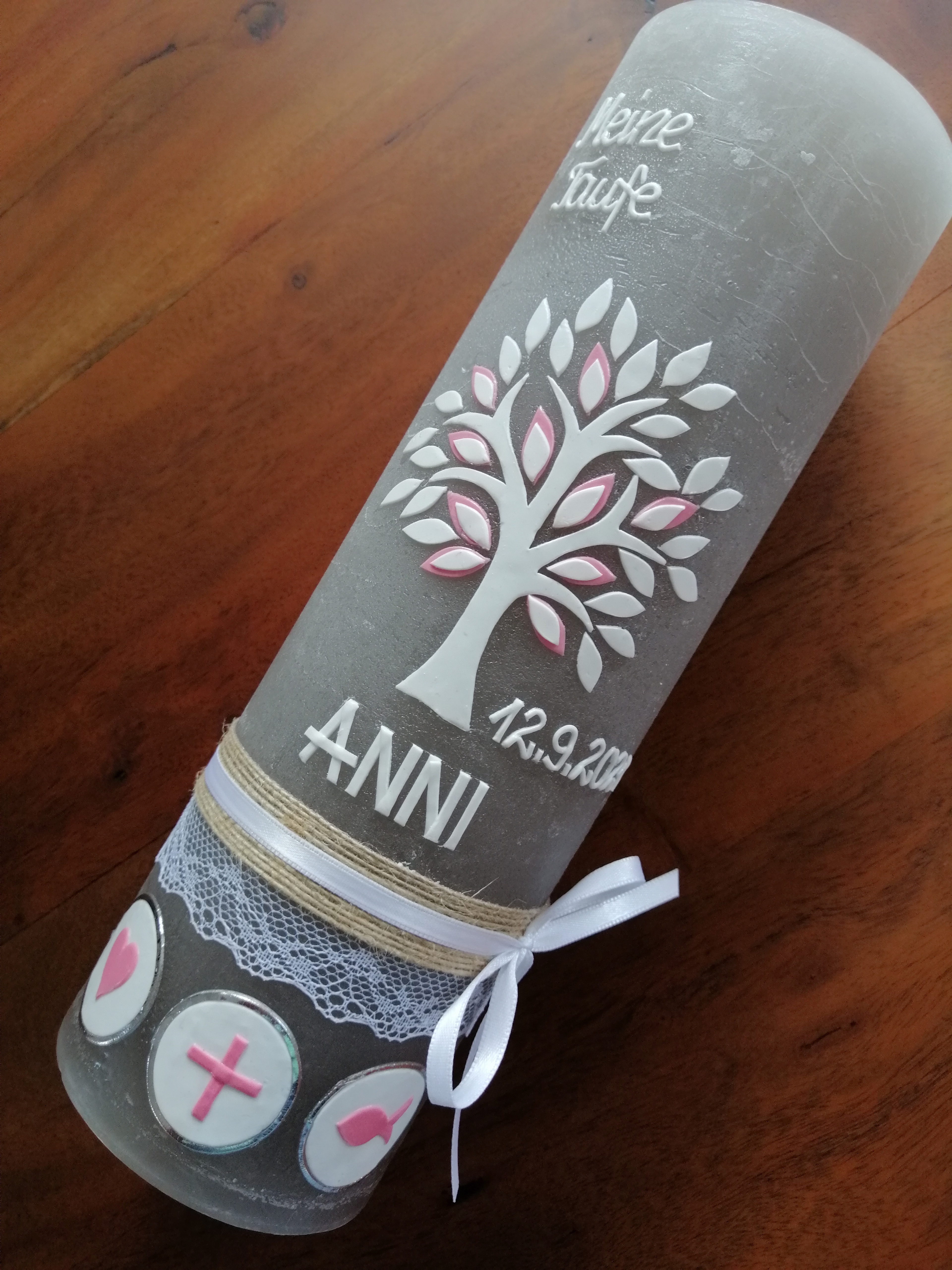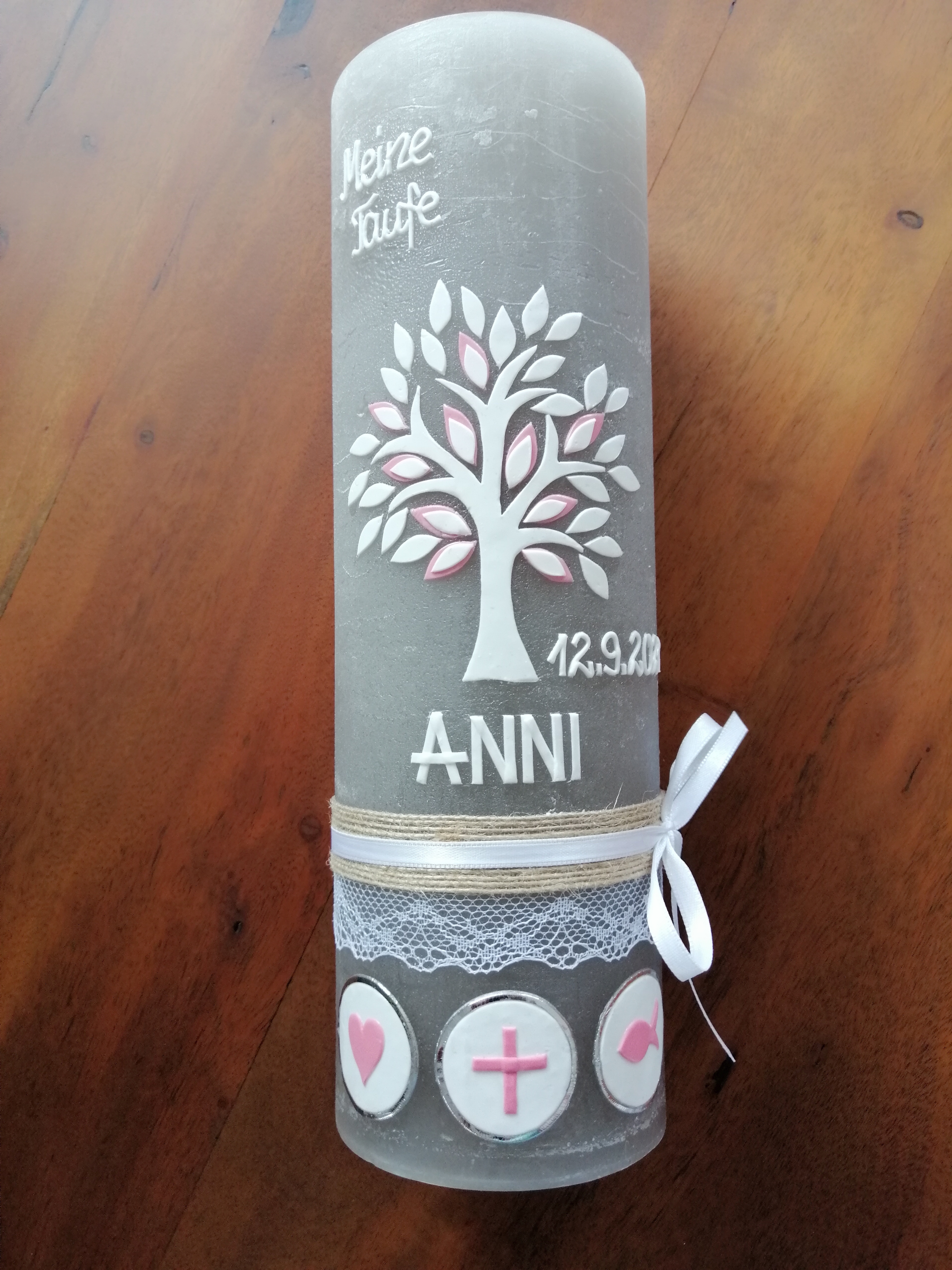 Rustica-Vintage Taufkerze Kommunionkerze Lebensbaum (2583TK)