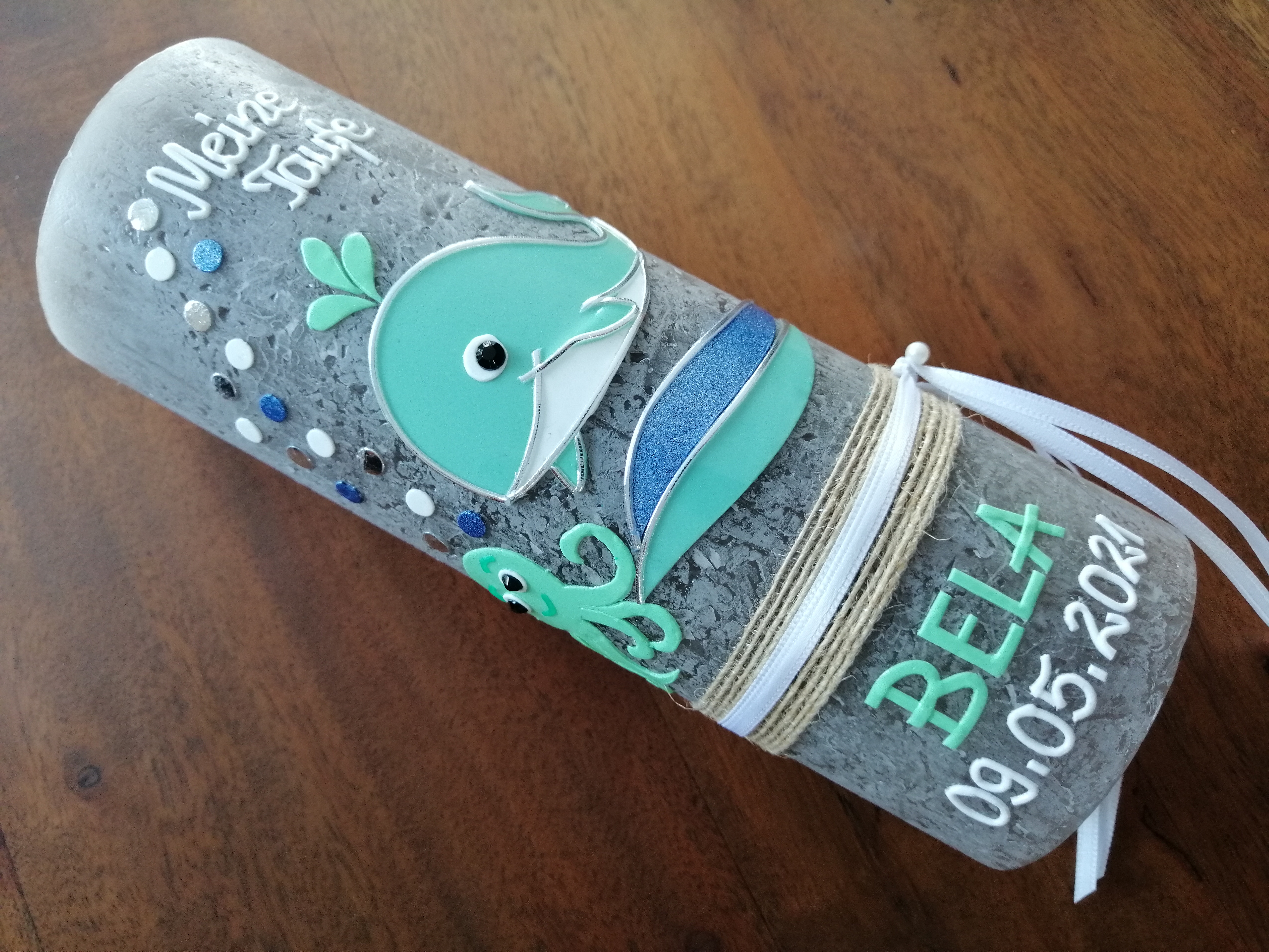 Die gewünschten Beschriftungen (Sprüche ausgenommen - 1 Name + 1 Datum max. sowie der Schriftzug "Meine Taufe") sind im Kaufpreis enthalten.