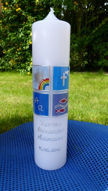 Auf Wunsch kann die Kerze individuell beschriftet werden.