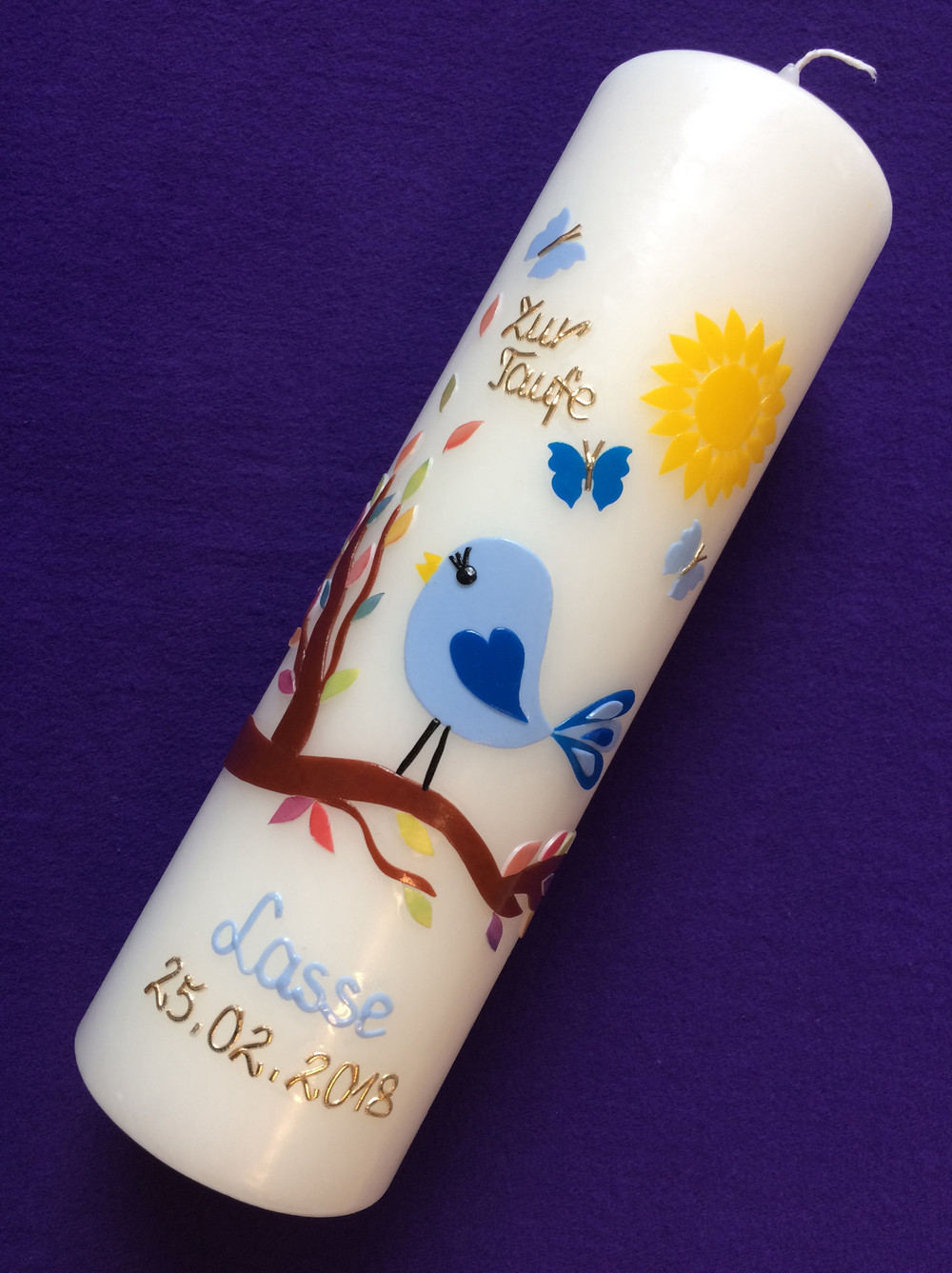 Auf Wunsch kann die Kerze individuell beschriftet werden.