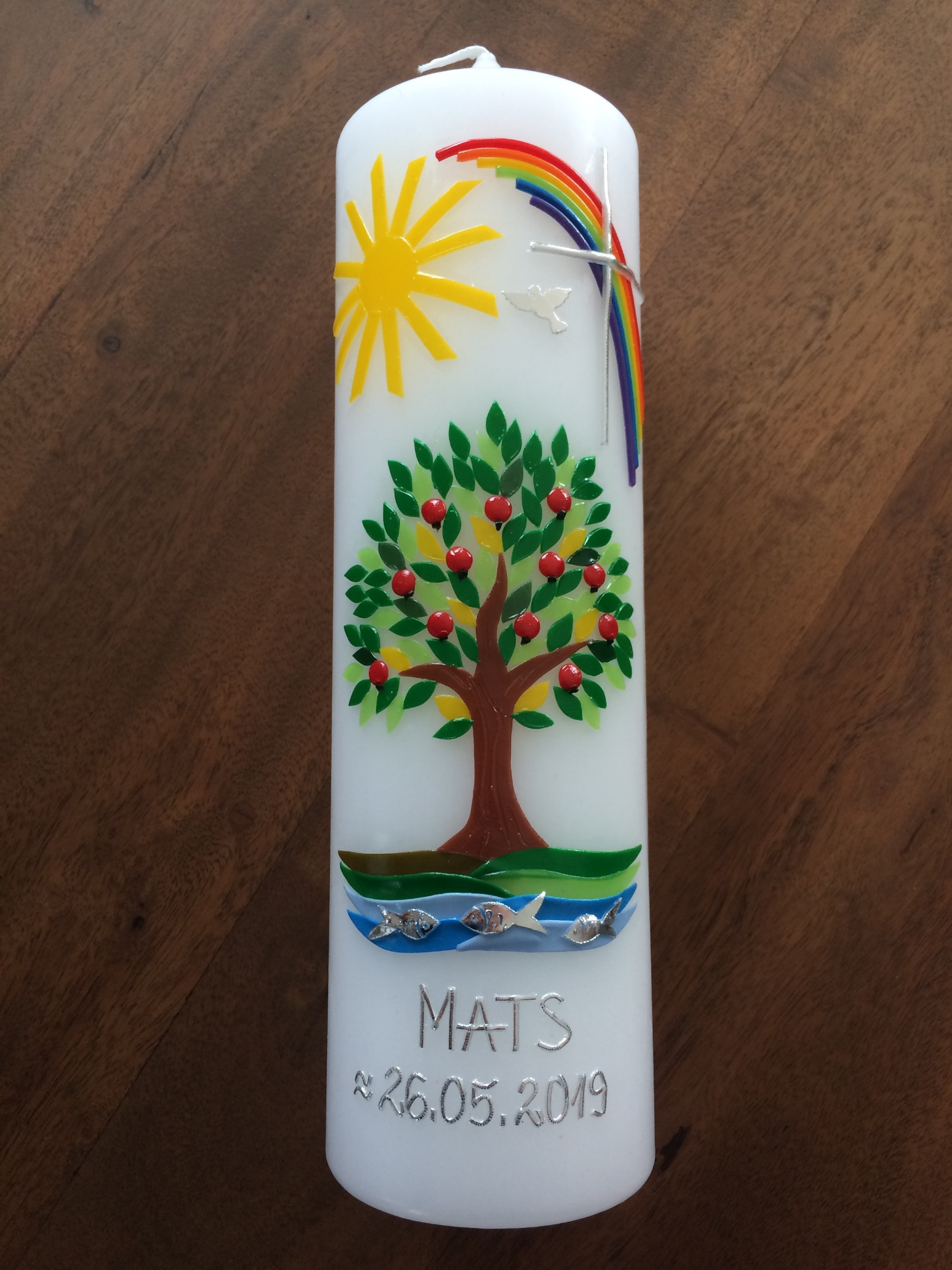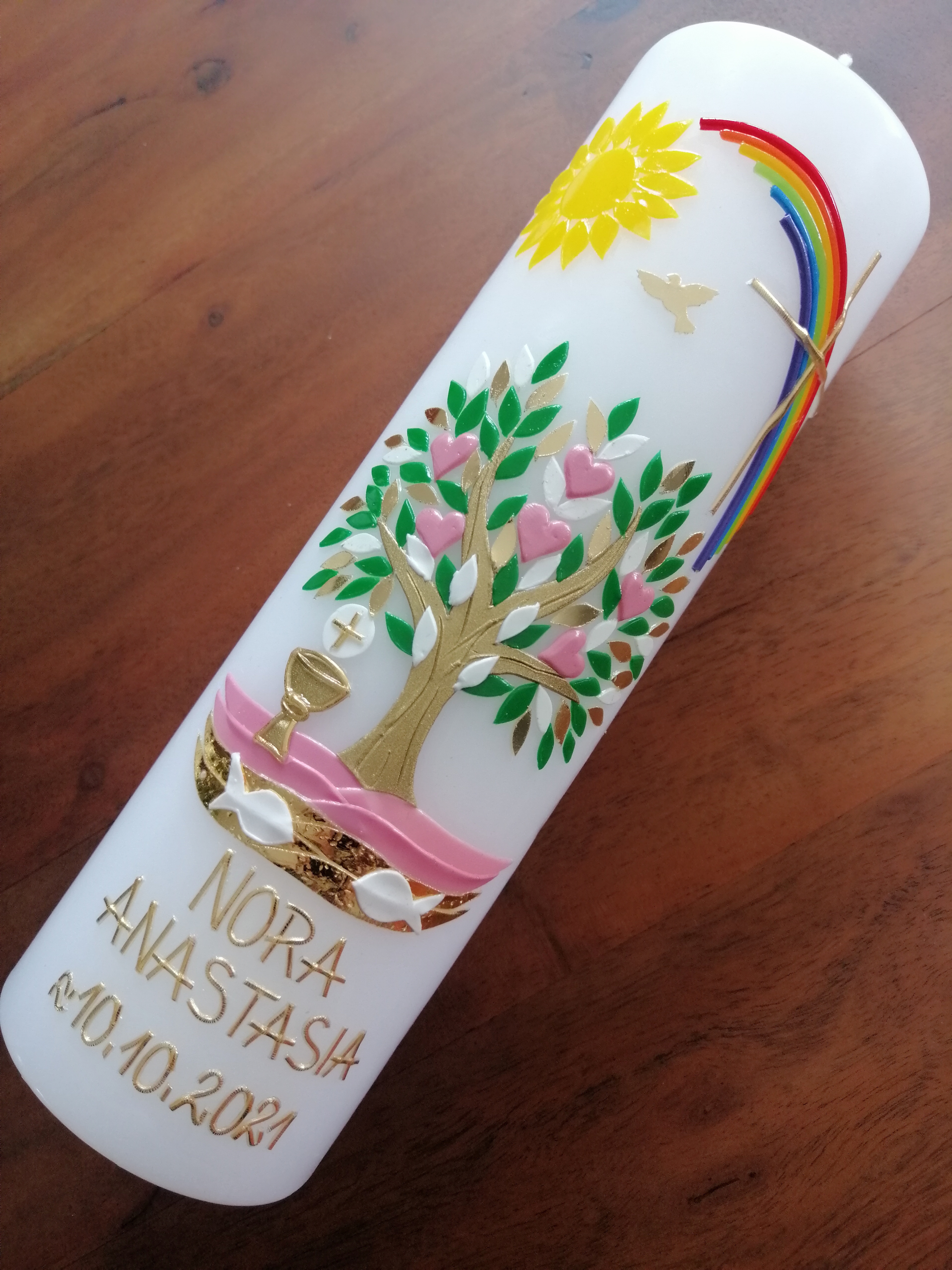 3 x Taufkerze Lebensbaum (1089TK, 2666TK, 2260a) 30x8 cm Elfenbein