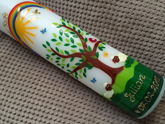 Die Motive auf der Kerze sind aus Wachs.