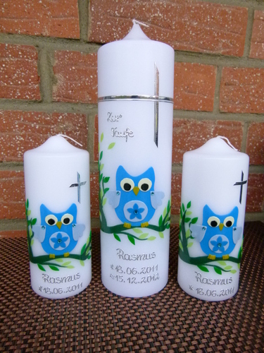 Größe/Maße: 1 x 25 x 7 cm (Taufkerze) + 2 x 15 x 6 cm (Paten-/Tischkerzen)