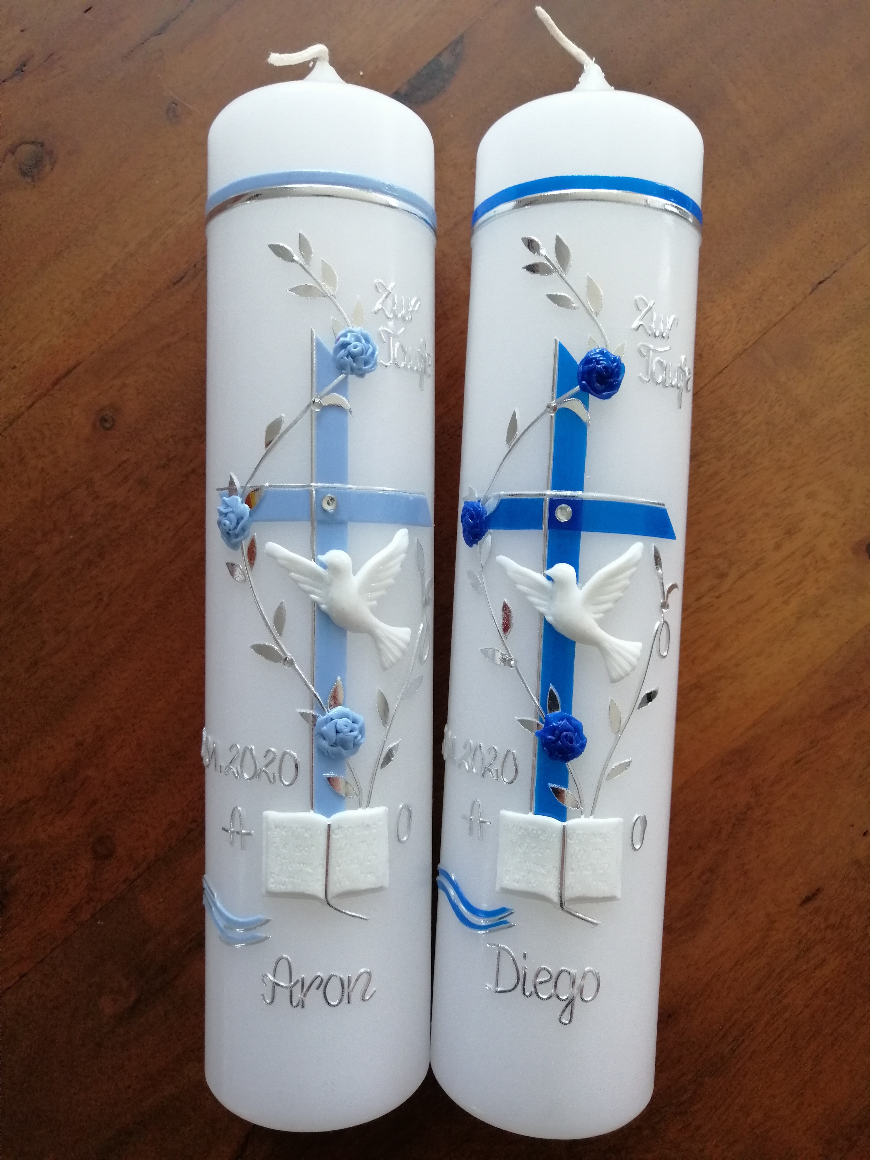 Die Motive auf den Kerzen sind aus Wachs.